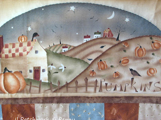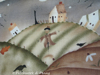 Il pannello l'ho preso già pronto, poi ho preso le stoffe coordinate. Inizialmente il "contorno" al pannello sarebbe dovuto essere di soli quadrati, ma poi..bhè un po' mi annoiavo a far solo quadratini.... un po' ho sbagliato anche di prender le misure al momento dell'ordine e così....:)