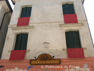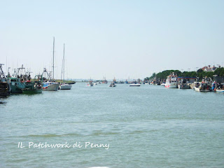 Ed eccomi qui! ma da quanti giorni non scrivo un post? Il tempo mi è letteralmente volato!!! Tra le cose da cucire e preparare per il mercatino e poi il tempo per ripigliarsi.....;)!!! E' andata molto bene, al di là del divertimento nel condividere con le altre persone (tutte donne..o quasi!) che creano questi bellissimi lavori di artigianato, devo proprio dire che la cittadina di Marano Lagunare è carinissima! Un gioiellino in una laguna!Ho fotografato in pratica solo la piazza, la chiesa e la laguna, ma come sempre le foto non rendono..meritava fotografare soprattutto le piccole casette, le calli e le piazzette, ma la testa era altrove e poi faceva un caldo incredibile!!Il clima era di festa, tra i drappi alle finestre e voglia di mangiare e bere in allegria..e infatti ci siamo fatti 'na magnata di Fasolari (tipico mollusco del posto) e Calamari davvero memorabile!!!