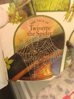 Ragazzi, che giornatona! Non so da voi, ma qui è esploso un pomeriggio proprio da fotografare! Un autunno caldo caldo che permette ancora di godere il tepore del sole in viso...che bello! In questi giorni già una paio di persone mi hanno chiesto di postare le famose zucche, ehm, sono ancora in lavoro ( non mi ci racapezzo con le foglie...) ma coming soon comunque..;) Invece, presa da questa luce formidabile mi son fatta conquistare dai colori primaverili di questa Paper-Cheescake( sì lo so è una torta di cartone, ma volete mettere l'effetto che fa chiamarla così?) fatta per abbellire la stanza di una bimba.Ho preso due scatole di cartone di diametri diversi e ho dipinto il coperchio color vaniglia.Ho incollato delle stoffe sulle tonalità del rose attorno al porto e infine ho incollato i pizzi e cucito la fragolona come Tilda insegna in Idee in Stoffa.Semplice semplice.Sopra il caro amico coniglio, a fianco un cuscinetto micro (di certo il giaciglio segreto del coniglio!) cucito con i rimasugli di una trapunta patchwork e un libro di fiabe per bambini che avevo comprato, badate bene, 20 anni fa nel Donegal, in Irlanda! vi ho mai detto quanto adori l'Irlanda? Ho dei ricordi bellissimi di quei posti, e il libro di favole all'epoca l'avevo preso perché mi piacevano i disegni..la storia più bella era per me quella di Twinette the spider (vedere foto) e ..come sono orgogliosa di questa coincidenza, guardate bene l'ultima immagine....toh!!!! la vista del mio terrazzo...stagliata verso l'orizzonte, precisa, perfetta e immacolata: la nostra Twinette italiana ha cucito la sua bella telona! Per fortuna di vede solo la ragnatela e non il ragno perché vista la costruzione potevo svenire...ma questa è decisamente un'altra storia..;)
