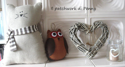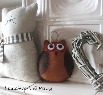 vederli improvvisando con del feltro che avevo a casa.Mi ha fatto così tanta tenerezza, con sti occhioni neri, che ne ho preparato subito degli altri, usando però non feltro ma cotonine americane dai colori autunnali. Purtroppo /per fortuna non posso più mostrarveli perché se ne sono