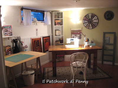 Dovete sapere che la stanza dove ora mi diletto di patchwork l'abbiam trovata come taverna..in "nuce".