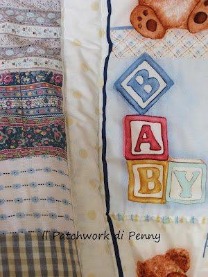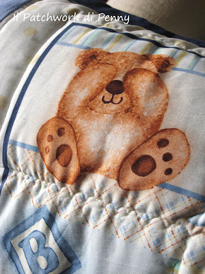 Perciò oggi recupero alcune foto scattate in novembre per un miniquilt, richiestomi per un piccolo boy in arrivo e preparato abbastanza in fretta ma con tantissimo amore.