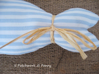 Ho avuto oggi il doppio onore di poter ammirare dal vero le tue magnifiche creature(zioni) e di conoscerti: che sei bravissima te l'ho detto di persona; ora scopro questo tuo blog (tra l'atro mi è venuto un colpo: abbiamo scelto lo stesso sfondo "legnoso"!) ed è entrare in un mondo incantato. Bravissima!!! Questo pesciolone è proprio simpaticissimo e davvero bello! Ottima anche l'idea "shabbosa" con juta. Complimenti e... alla prossima :-) Ciao, silvia