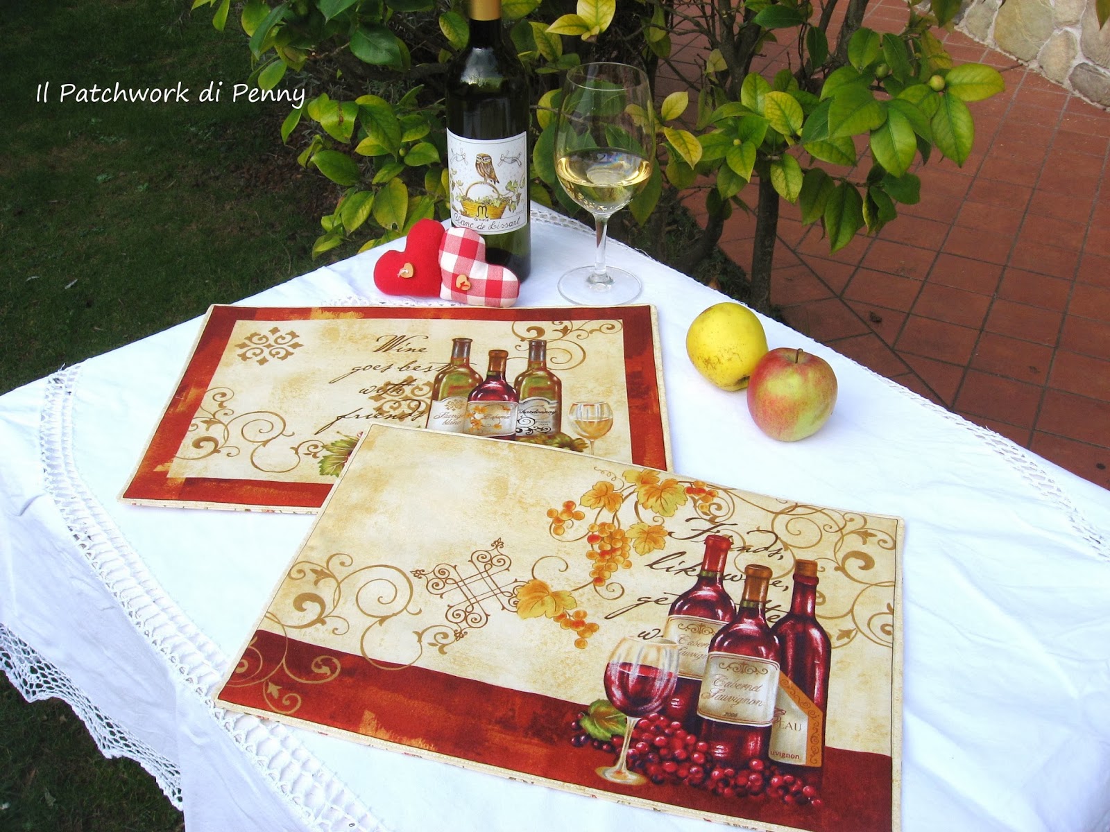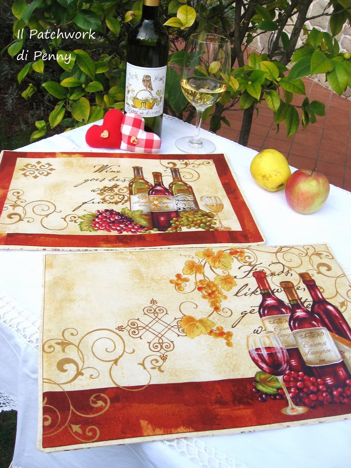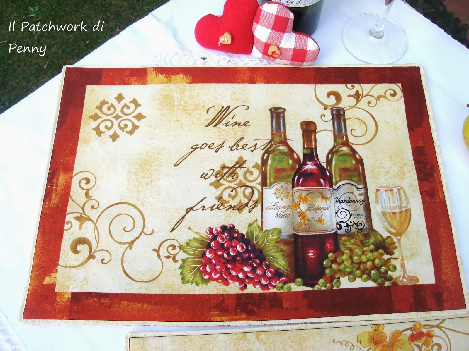 Era da un po' che cercavo qualcosa di tipicamente europeo da poter offrire a degli acquirenti stranieri, speravo in una stoffa con dei vini italiani, ne ho trovata una raffigurante quelli dei cugini d'oltralpe.La stoffa è davvero molto carina, sia sui toni del bordeaux che con un fondo nero che qui non vedete.