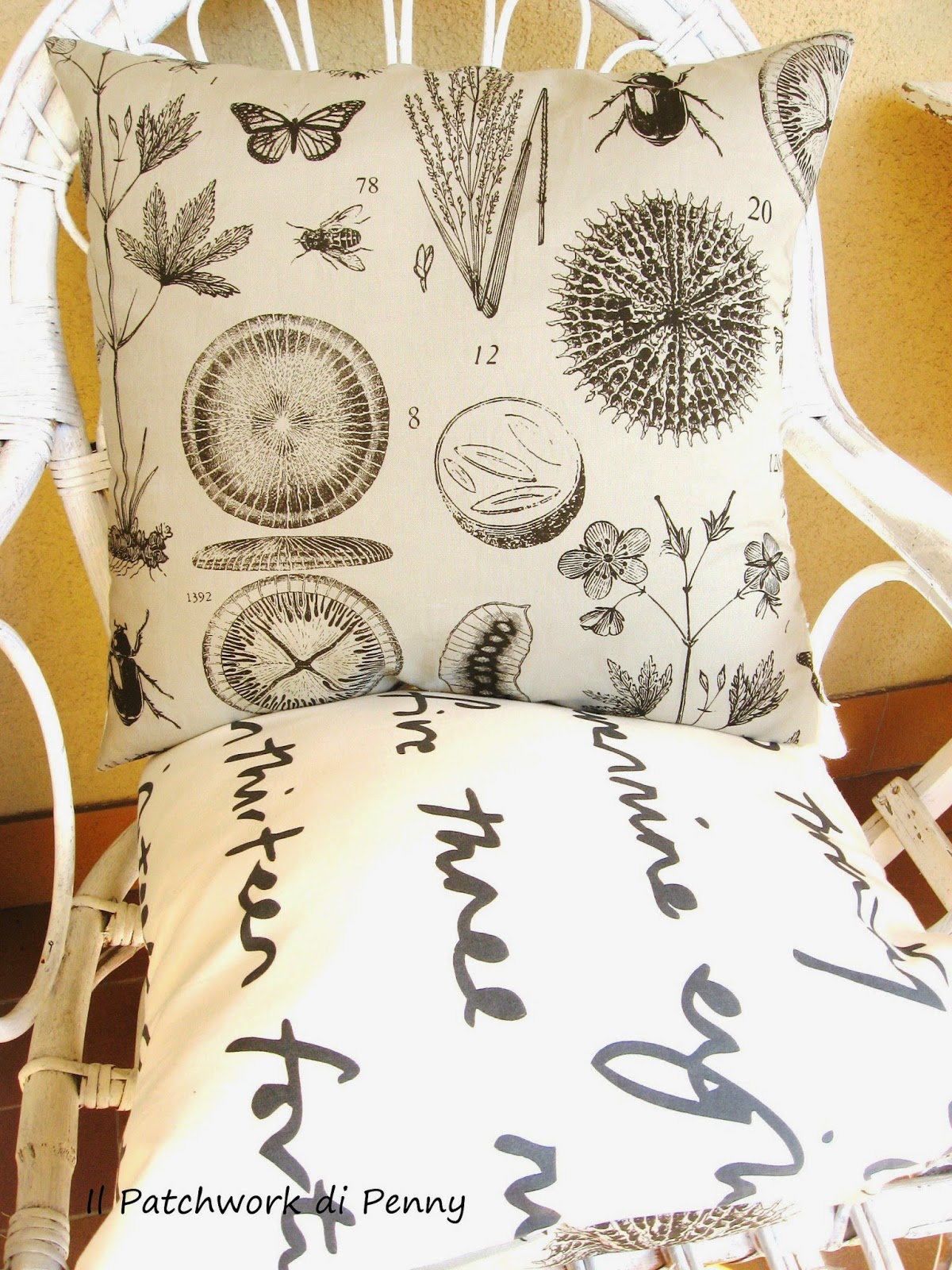 La juta rende country, la stoffa grigia a quadretti dona luce, il retro dei cuscini con la stampa a "scritto a mano" (sempre Ikea) dà un senso retrò così francese...sono contenta :) e voi cosa ne pensate?