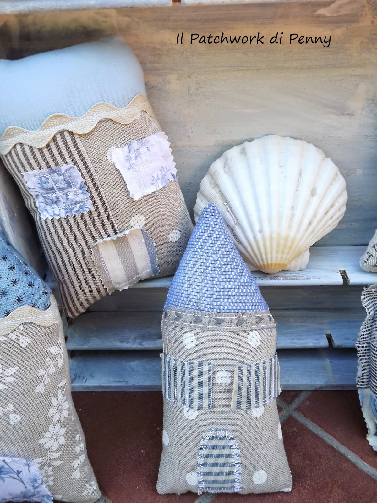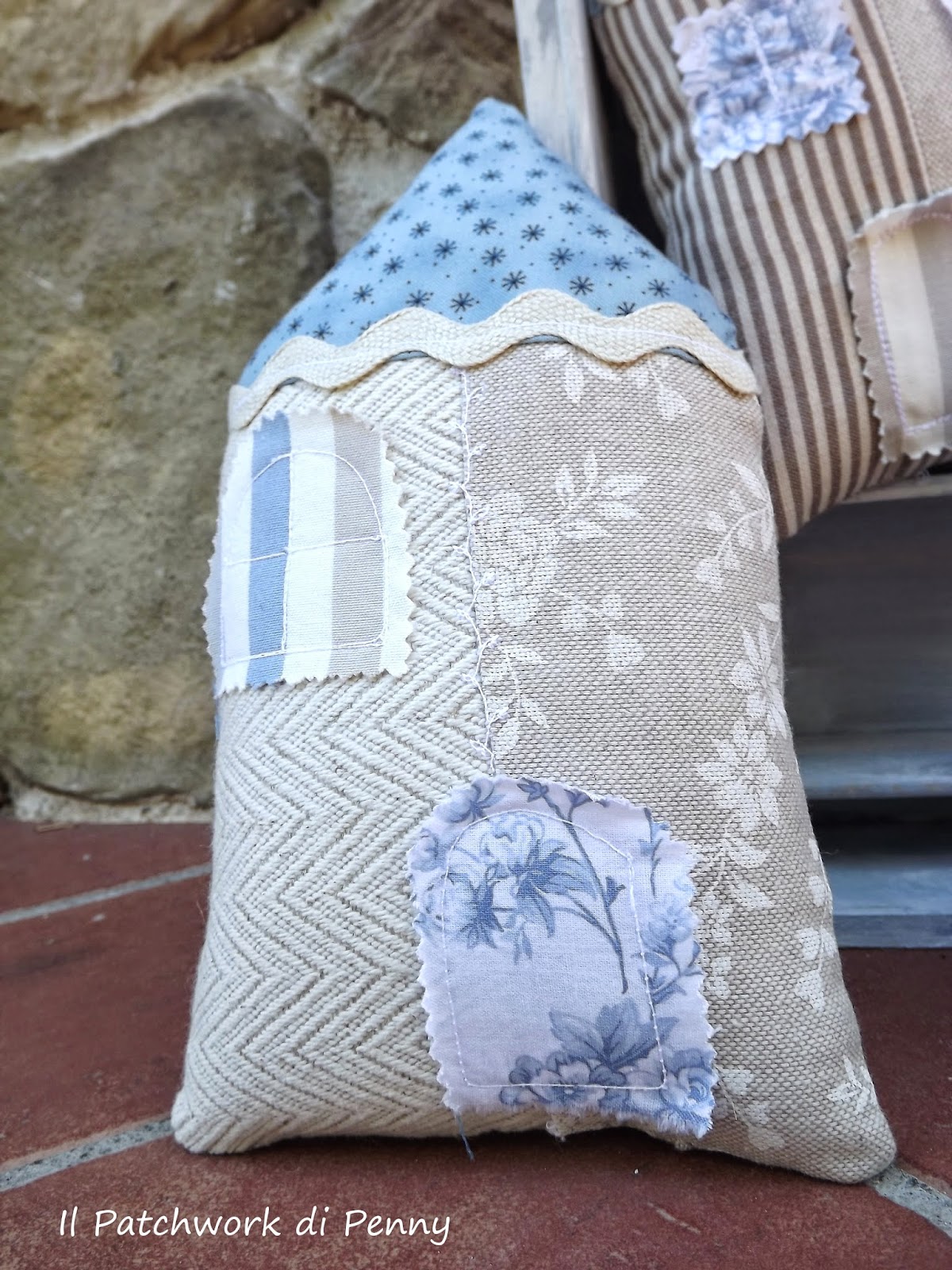 Oggi vi mostro delle casettine di stoffa che ho preparato qualche settimana fa, l'accostamento del celeste, azzurro e grigio polvere non mi stanca mai.