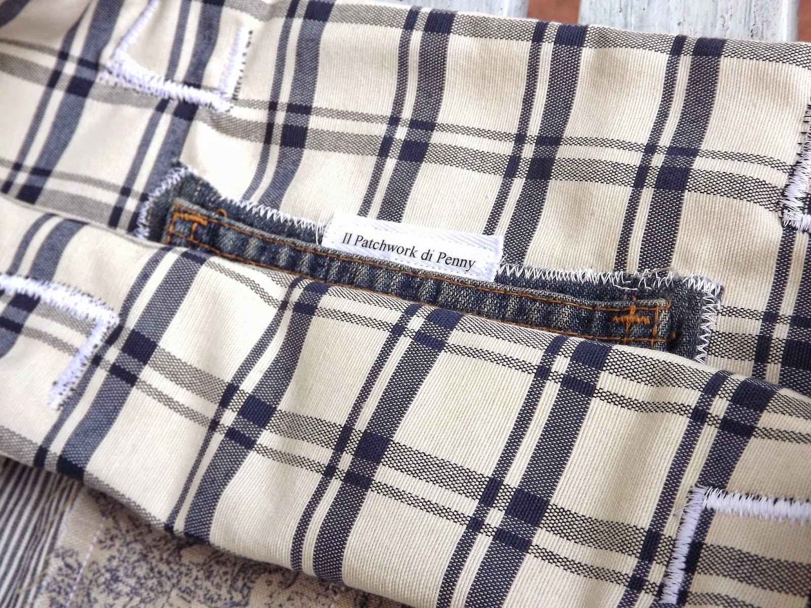 E così con questi scampoli, cuciti con punto a zig zag per dare un senso ancora maggiore di patchworkosità (!) e applicati ad un tessuto da tappezzeria, è nata la nuova borsetta!