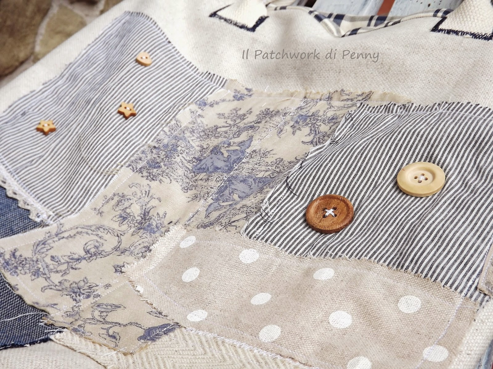 Orginale perchè nasce un giorno di pioggia ( guarda caso...) mentre stavo cercando uno scampolo per fare una casetta, mi son trovata a sistemare sul pavimento della craft room una serie di stoffe, diverse fra loro, ma che assieme sembravano creare un unicum davvero armonioso.