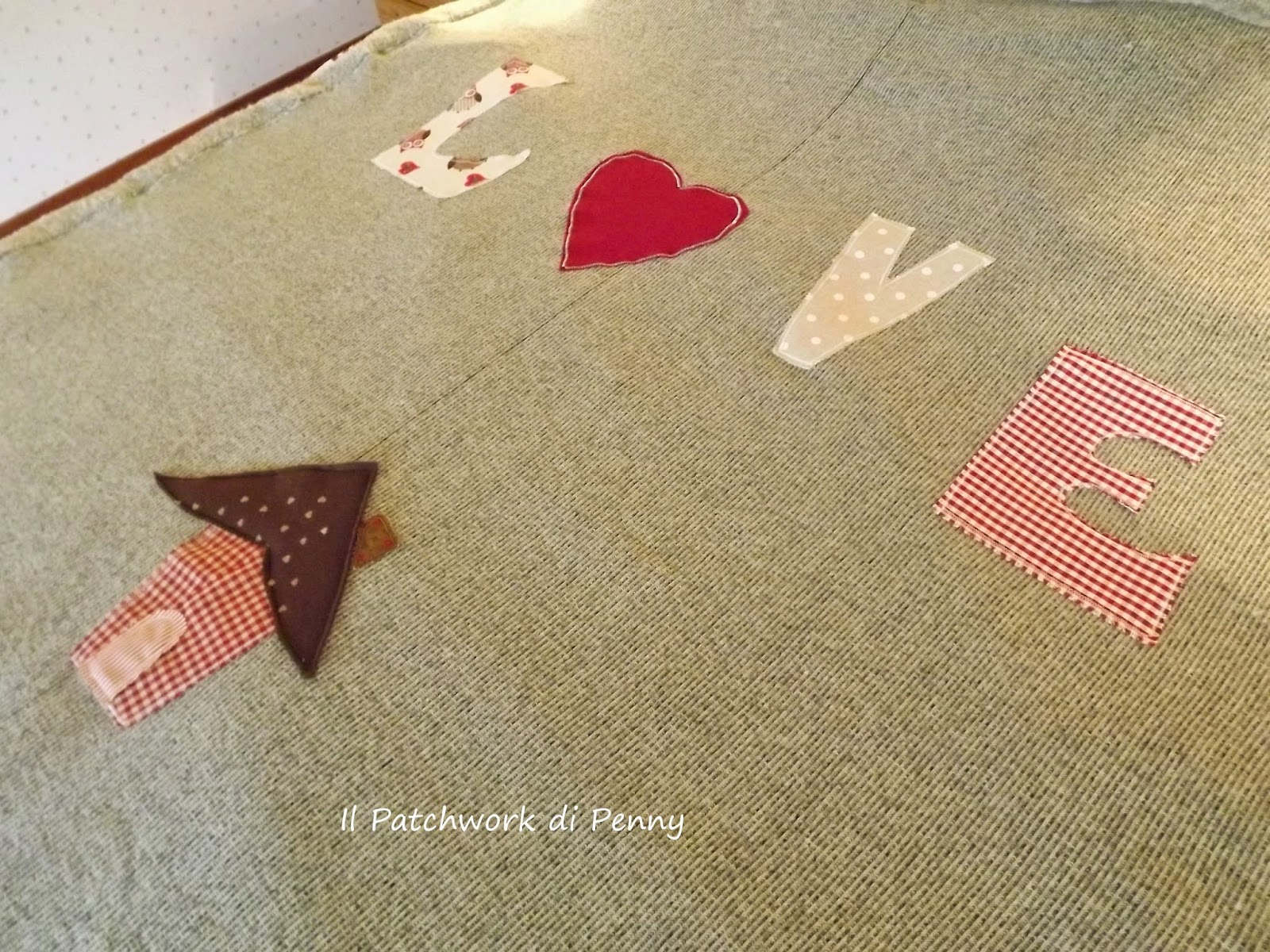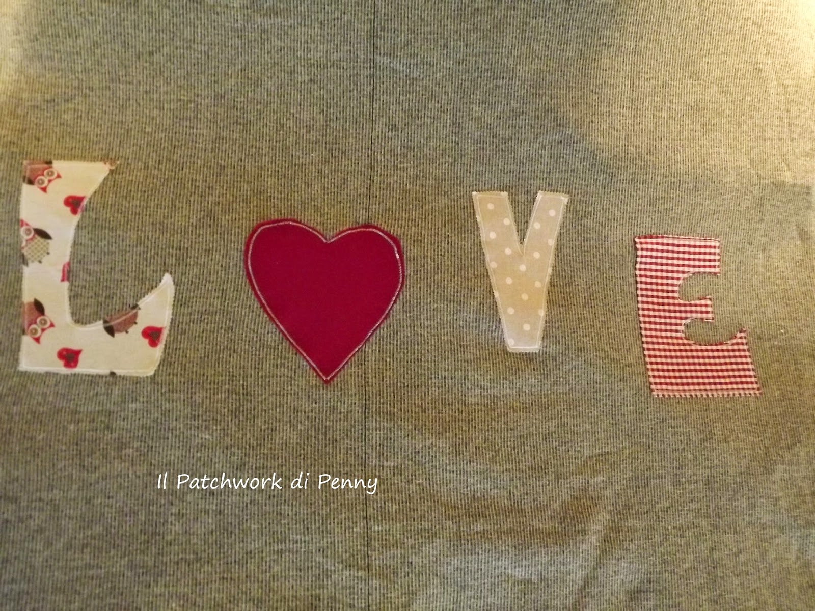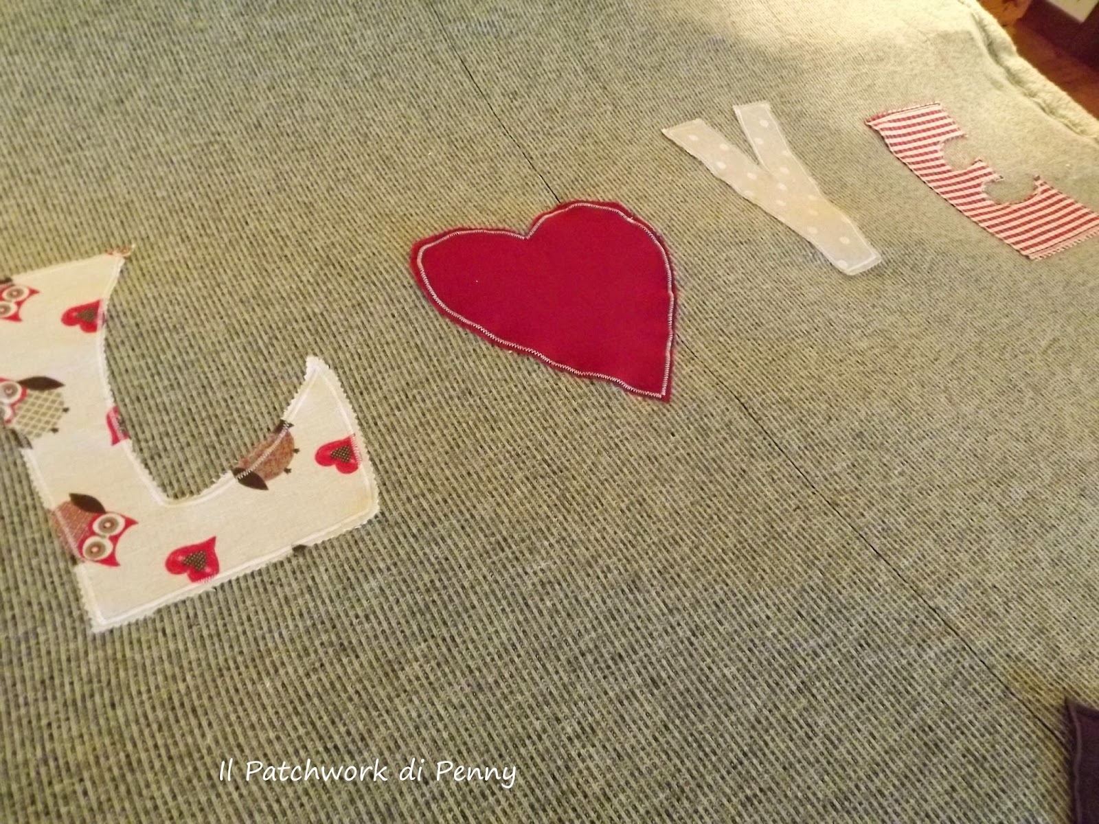 Il resto delle lettere è cotone, ritagliato "frastagliato", cucito a zigzag, per dare un senso di spontaneità. Le cose troppo precise mi mettono ansia :)