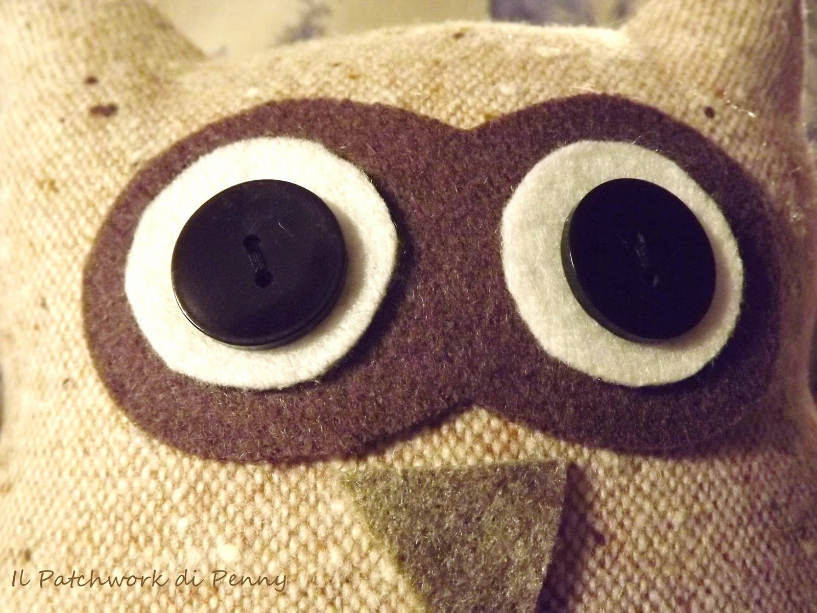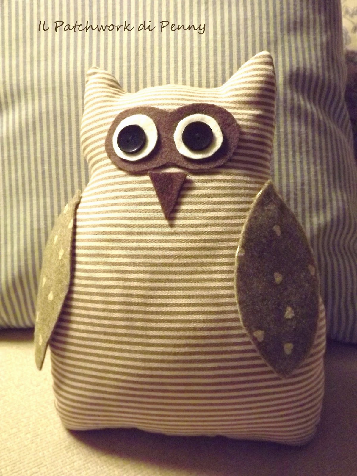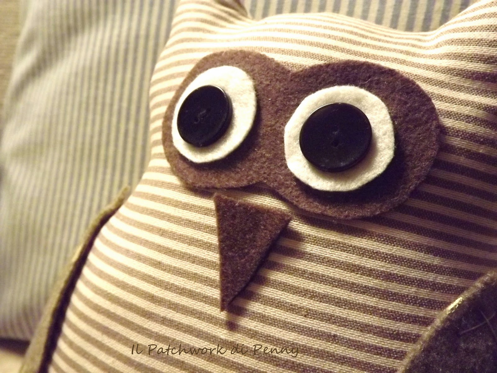 Di gufetti ne faccio a bizzeffe, li produco come se fossero pagnotte, tanto mi piace cucirli! Li ho sempre confezionati di dimensioni non tanto grandi, per venir appesi su una porta,