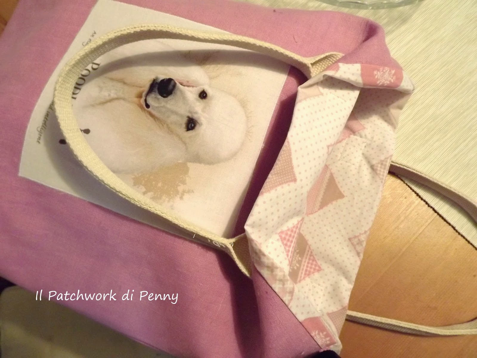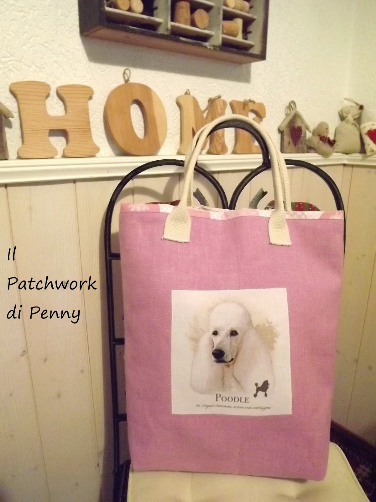 Questa Borsetta mi è stata commissionata qualche settimana fa da una signora gentilissima, proprietaria di una dolcissima barboncina bianca.Desiderava moltissimo sia la borsetta sia un cuscino coordinato da poter mettere sul divano.