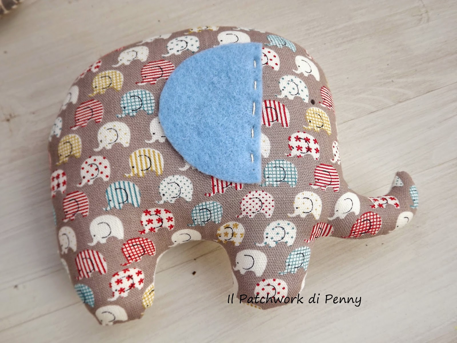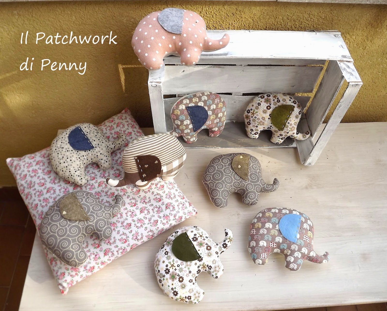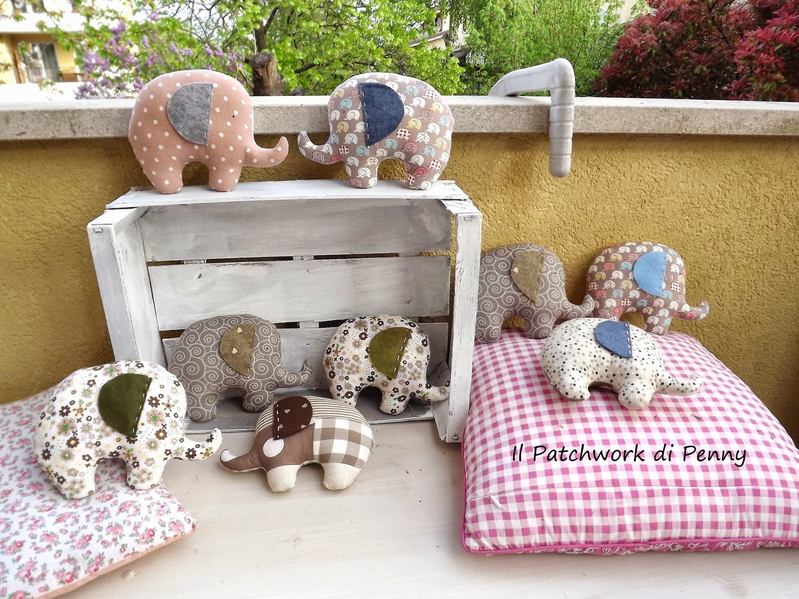 Se tutto va bene, nel senso se il meteo regge, domani avrò un mercatino (ad Aquileia) e poi ne avrò un altro il Primo Maggio con Magie delle Mani a Cividale del Friuli. Ero in mezzo a un sacco di roba da fare e la mente stracolma di pensieri fino a ieri, quando una bella notizia lavorativa ha spazzato via le nubi che mi otturavano il neurone...! Si sblocca la mente, si sblocca anche la creatività....e così in queste ultime ore cerco di terminare quello che ho iniziato da settimane e non ho ancora portato a conclusione.Cuscini, tovagliette, borsette, rane, conigli, topi ed...elefanti!!! Sìììììì, dopo anni che li avevo in testa, gironzolando alla fiera di Vicenza ho trovato una stoffa che li aveva stampati e ispirandomi a lei ho cominciato disegnarlo e ho cucito..il primo!