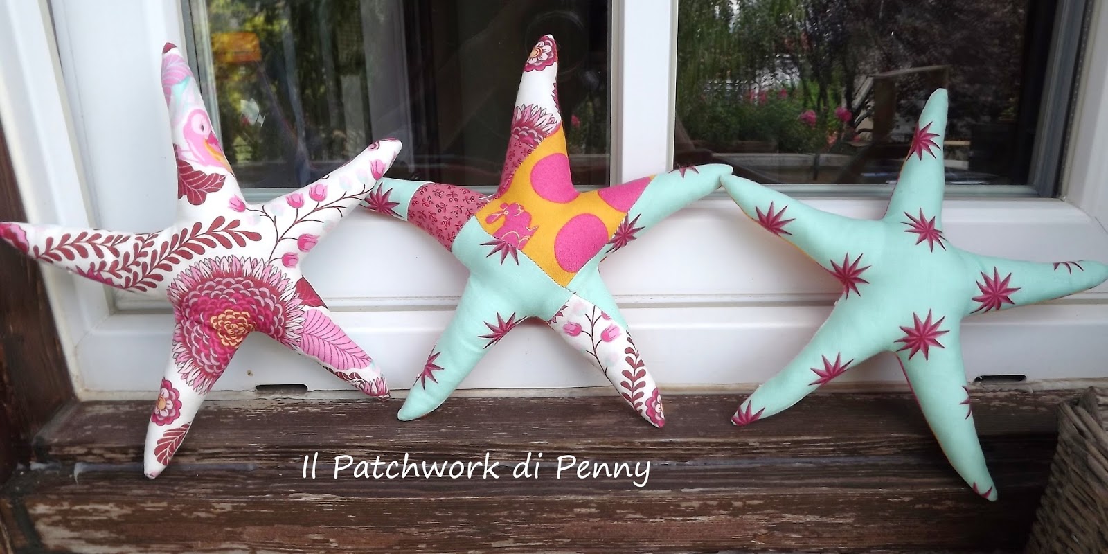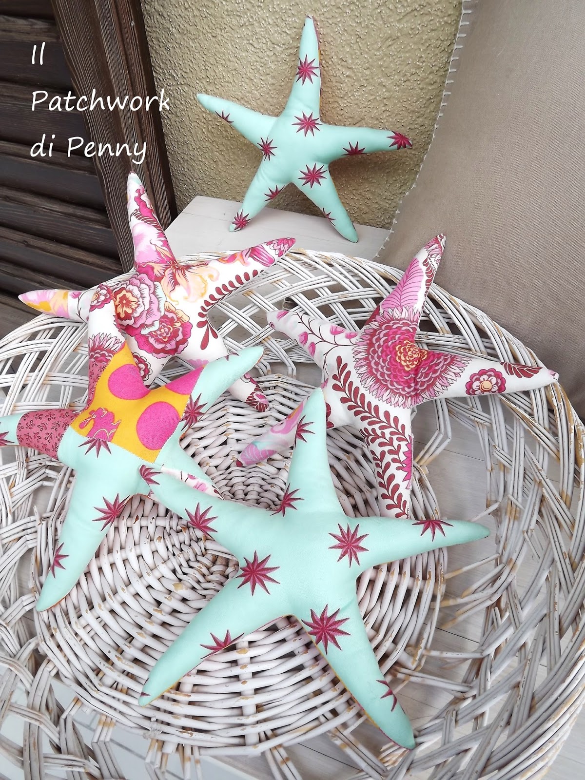 Siamo ai primi di settembre e io non sono assolutamente pronta all'autunno.Sì, ogni tanto quando piove penso a dei progetti in feltro, immagino creature che vivono nei boschi e mi domando:come faccio a disegnare e creare un lupo, una volpe? Ho tirato fuori dall'armadio le stoffe pesanti, un po' di lana, un po' di tweed, quelle che hanno toni arancioni e bordeaux...sì ho dei momenti autunnali.Ma non ..definitivamente! ;) e poi l'astronomia ci insegna che abbiamo davanti ancora un paio di settimane abbondanti....et quindi? E quindi ancora cavallucci marini, stelle e stelline, conchiglie ( qua non le vedete ma vi assicuro che ne ho cucite un sacco), colori vintage, vivaci, marini..estivi! :) Vi lascio alla prossima con la speranza di goderci ancora un po' di caldo ( non mi basta mai) e un po' di mare :)