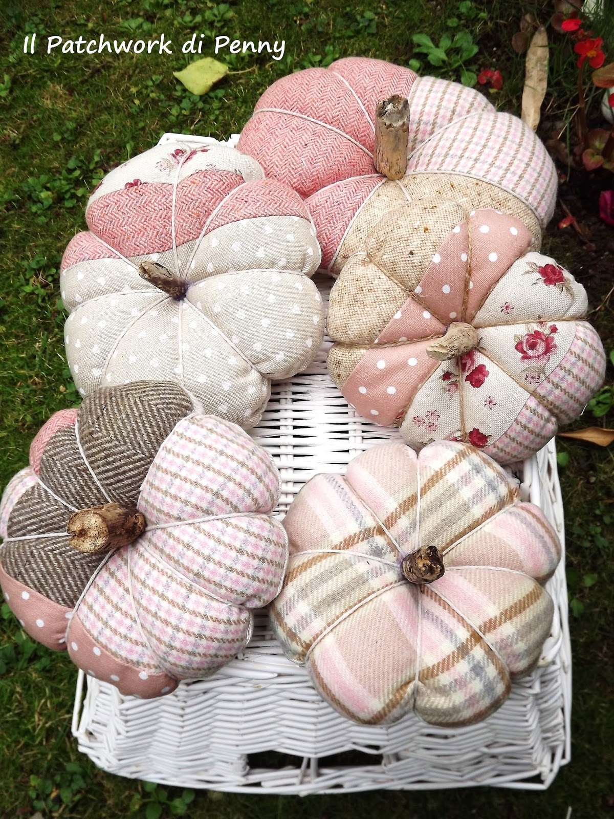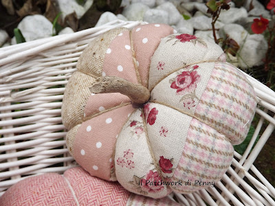 Quando le ho portate all'ultimo evento/mercatino di Cividale tutti mi chiedevano:ma come mai rosa? Ebbene, due settimane fa ho scoperto a Mantova le zucche rosa.Sono certa che esisteranno anche in altri parti del mondo, io ne ignoravo l'esistenza.Mi sono piaciute tantissimo e il mio cervellino ha subito pensato di crearle in versione stoffosa.Comunque, niente paura, se siete degli abitudinari e a vedere le zucche rose vi crollano tutti i sistemi di riferimento che avete...non preoccupatevi che ne ho fatte anche di arancioni! Ma questo ve lo mostro la prossima volta! :)