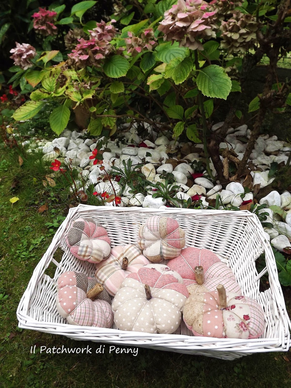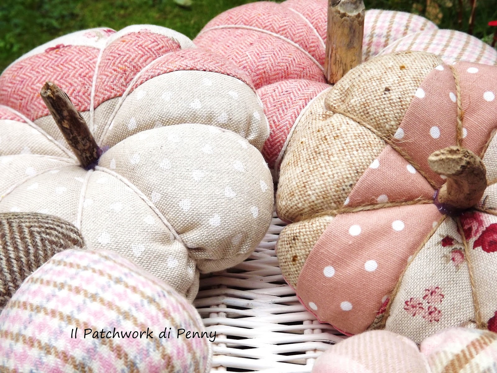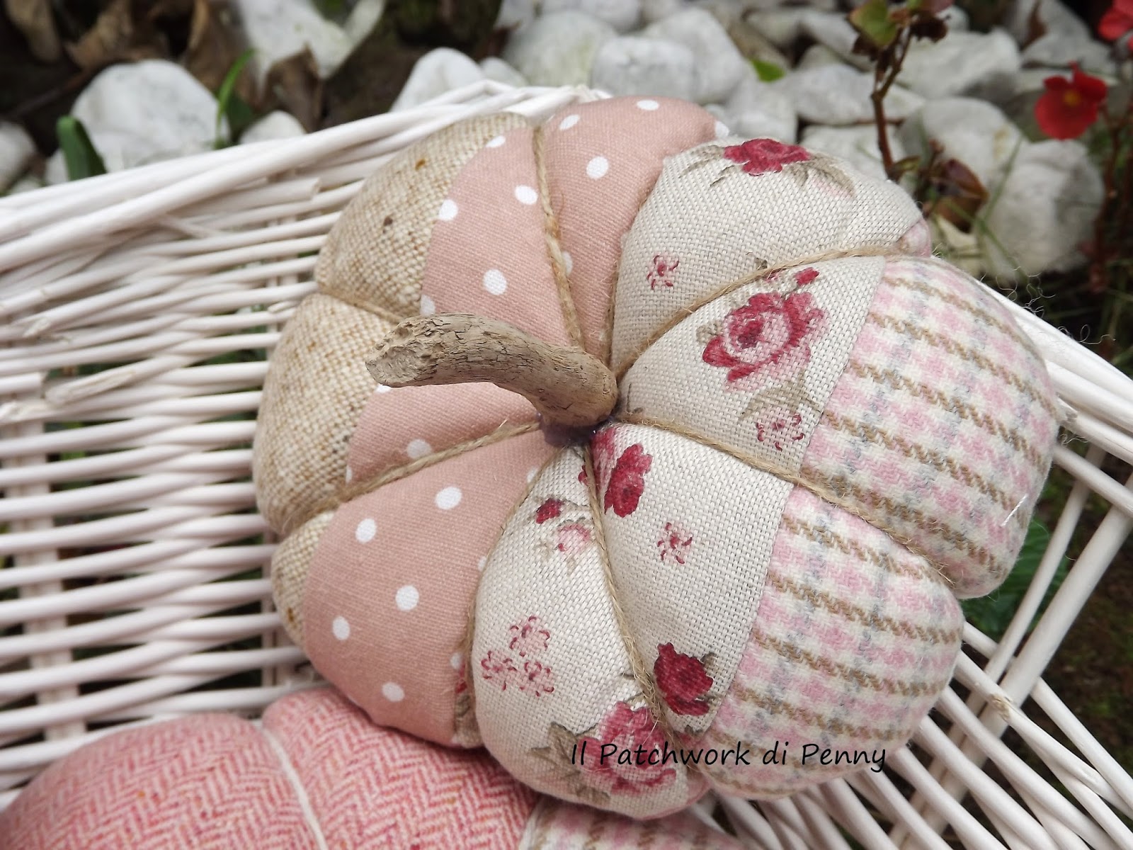 Quando le ho portate all'ultimo evento/mercatino di Cividale tutti mi chiedevano:ma come mai rosa? Ebbene, due settimane fa ho scoperto a Mantova le zucche rosa.Sono certa che esisteranno anche in altri parti del mondo, io ne ignoravo l'esistenza.Mi sono piaciute tantissimo e il mio cervellino ha subito pensato di crearle in versione stoffosa.Comunque, niente paura, se siete degli abitudinari e a vedere le zucche rose vi crollano tutti i sistemi di riferimento che avete...non preoccupatevi che ne ho fatte anche di arancioni! Ma questo ve lo mostro la prossima volta! :)