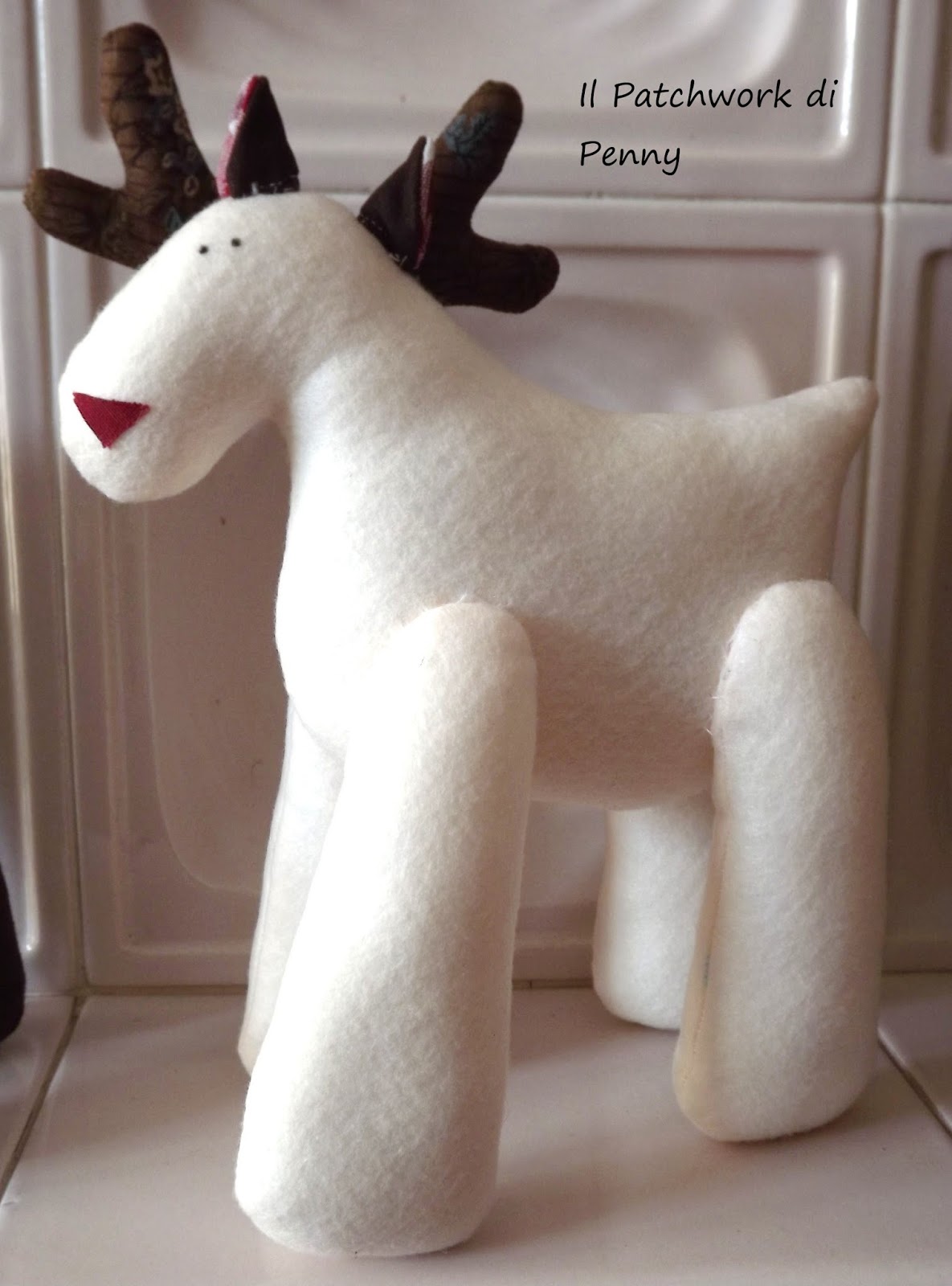 Direttamente dall'Ikea, dove troneggiava splendido e da dove me lo son portato sottobraccio fino a casa.... Ma non è da solo! Accanto a lui quattro dolcissime renne di feltro (modello Tilda), color nocciola chiaro, color panna, color cioccolato e color fior di latte.Rigorosamente hand made.