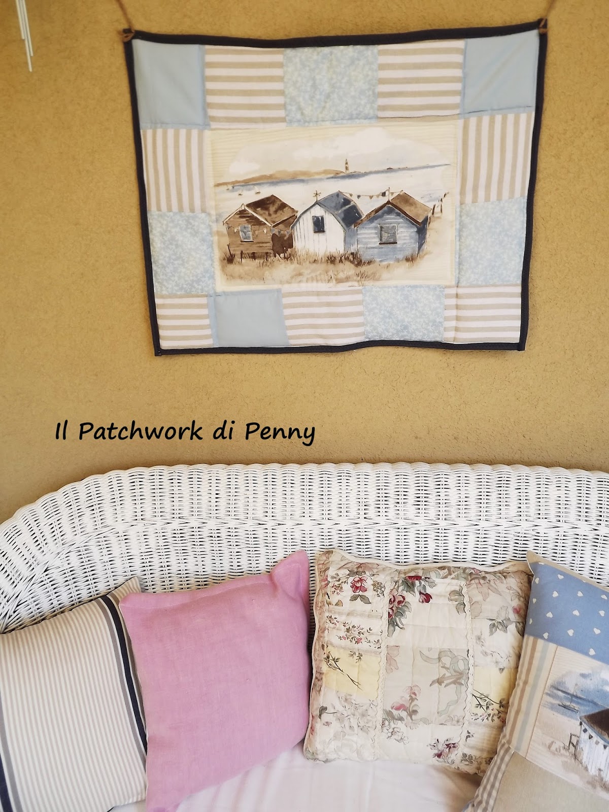 Sono in arrivo nuovi animaletti da compagnia marina ( ah ah ah ), trattasi di polipetti e medusette che sto disegnando e sperimentando.Non temete, so che state fremendo sulle sedie, vi terrò assolutamente aggiornati appena li avrò sfornati per benino.Intanto volevo mostrarvi il mio piccolo pannello patchwork che ho appeso nel nostro salottino-verandino-terrazz-ino, che ha portato nuovi colori e nuovi cuscini coordinati.No, perchè non è che si possa fare un pannellino e poi non si fanno i cuscini coordinati, stiamo scherzando? ;)