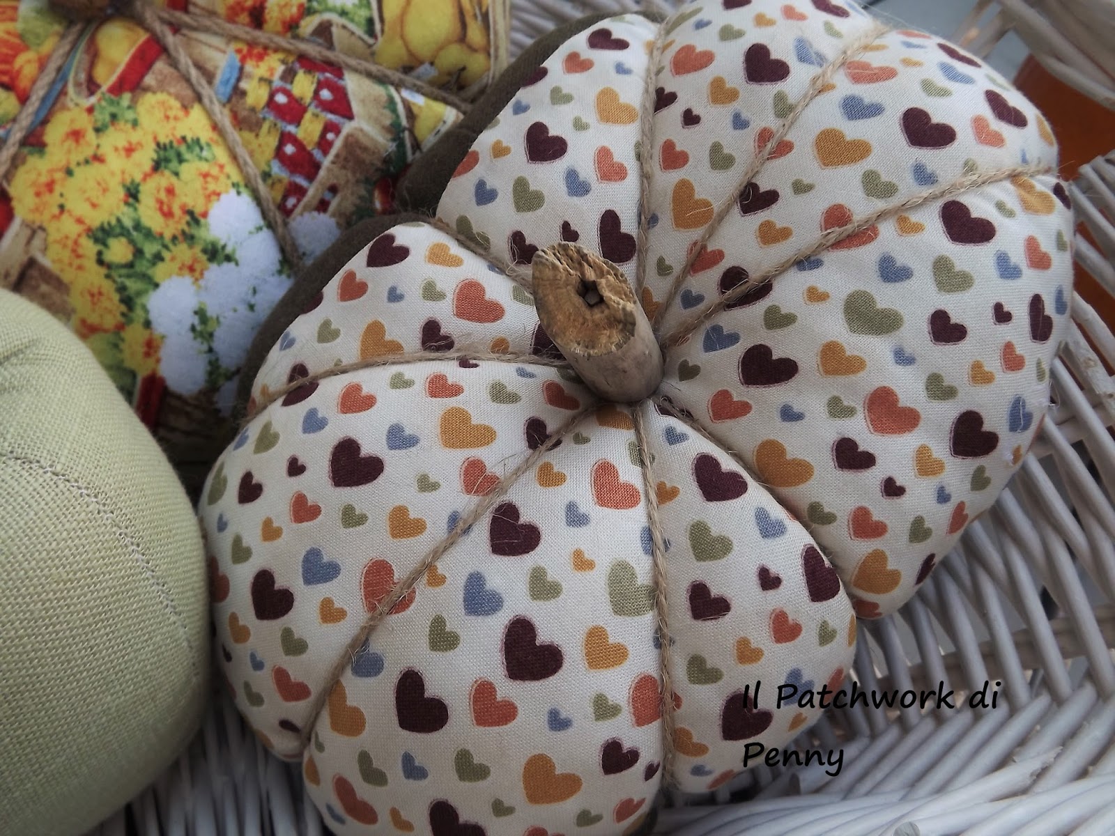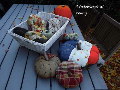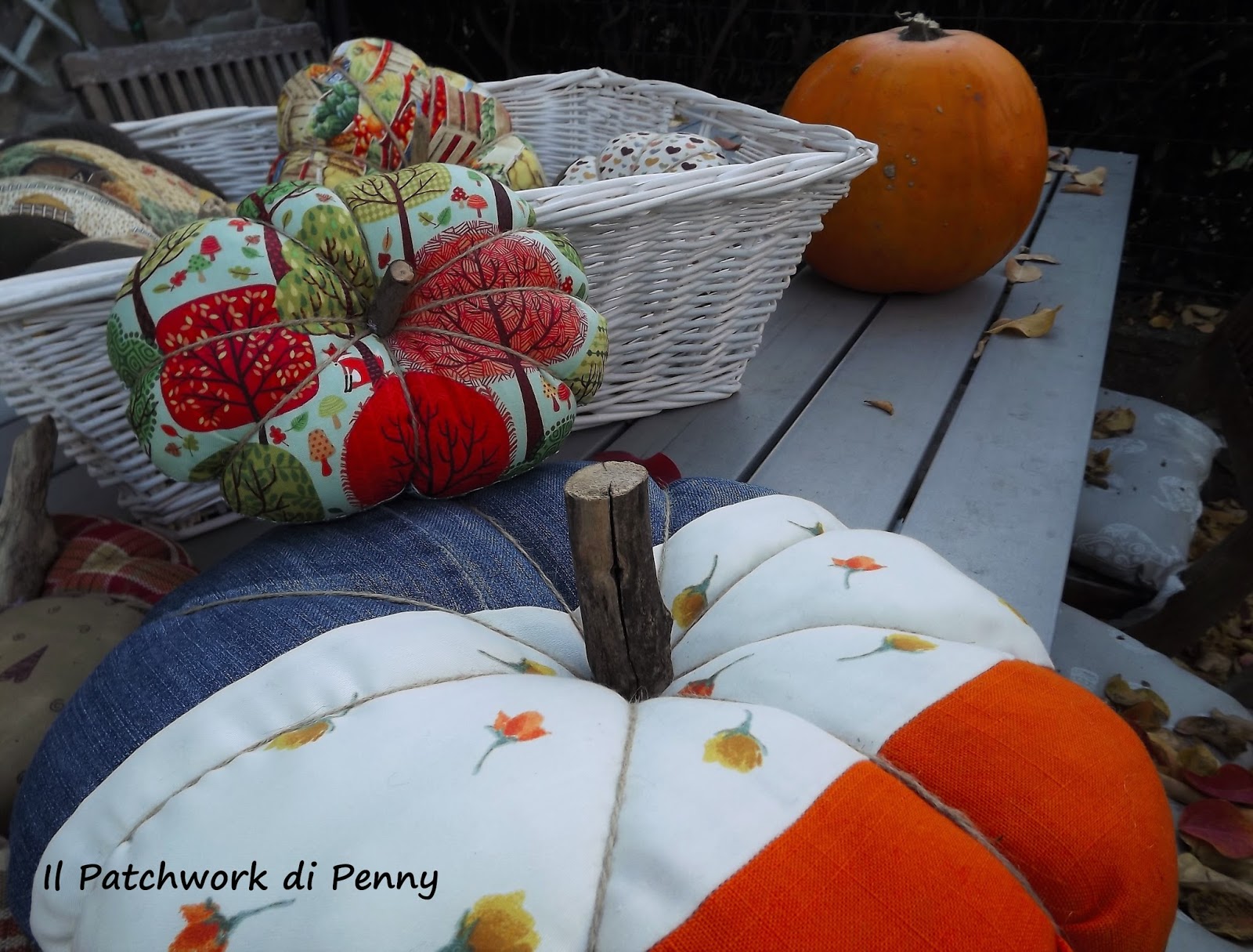 Oggi, che è il 31 e che strane magiche atmosfere avvolgono la notte delle streghe, oggi che i due mondi, secondo la tradizione celtica, assotigliano i loro confini e le cose vecchie se ne vanno per dar posto alle nuove, oggi io festeggio con le mie zucche patchwork.Sperando che il futuro mi veda sempre cucire spensierata e capace di trasformare anche la realtà più buia in un arcobaleno di colori.