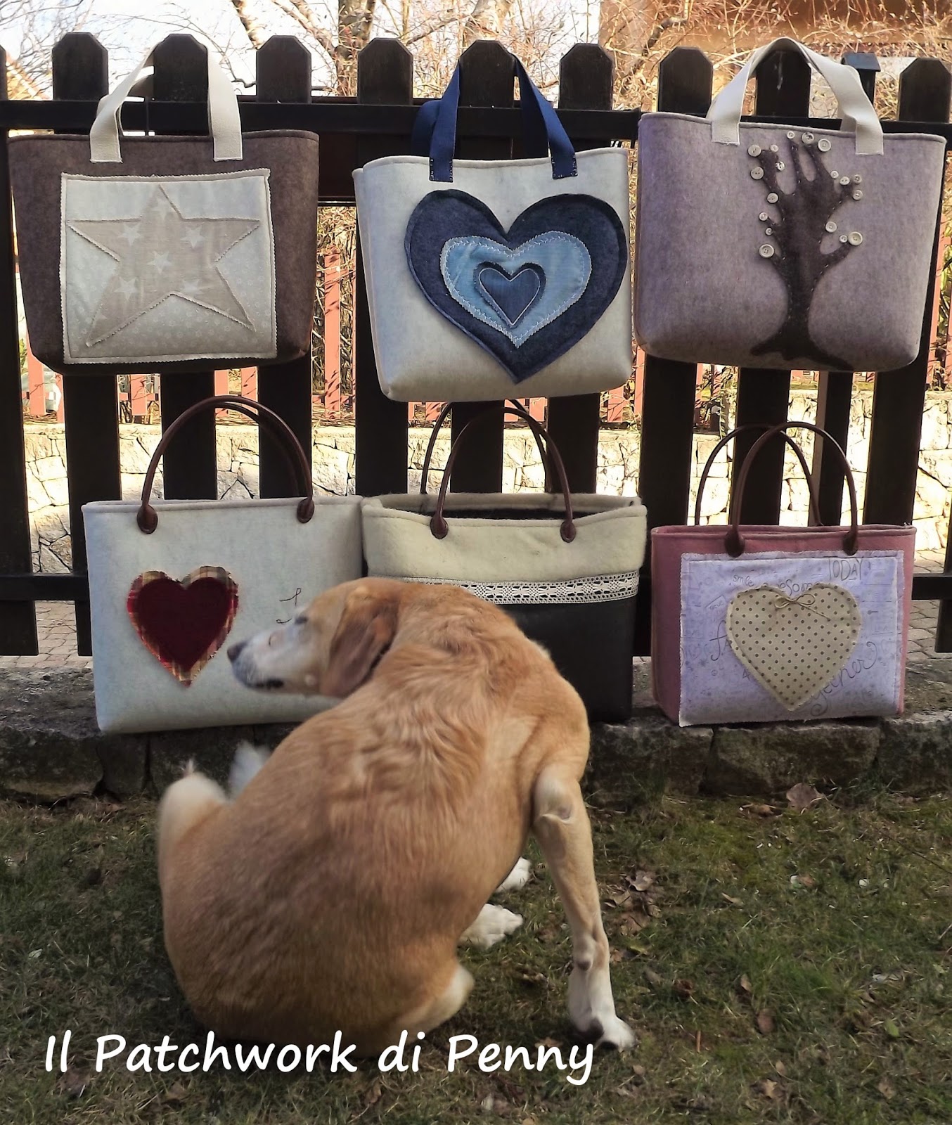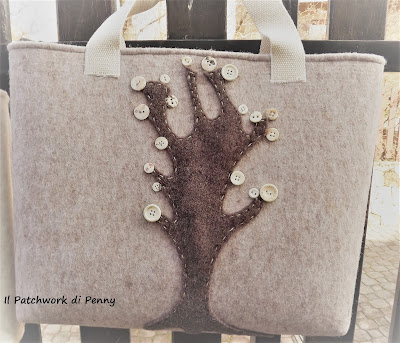 Si tratta di borsette in feltro che adoro cucire in questi periodi freddi ed invernali.Mi piace cucire a mano ( si veda la borsetta con l'albero, tutti i bottoni sono cuciti a mano) perchè mi rilassa, anche se non scelgo sempre di farlo perchè in effetti il tempo è sempre poco.